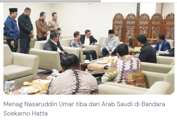 BIPOL.CO, CENGKARENG – Menteri Agama Nasaruddin Umar tiba di Tanah Air, usai menghadiri Konferensi Lembaga Hadis Nabawi binaan Raja Salman di Madinah.